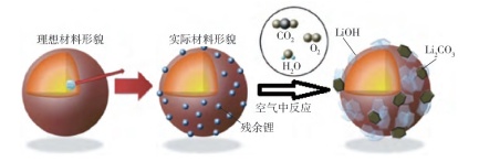 ▲三元材料暴露在空氣中后表面結構變化(圖片來源:安富強等.純電動車用鋰離子電池發展現狀與研究進展)