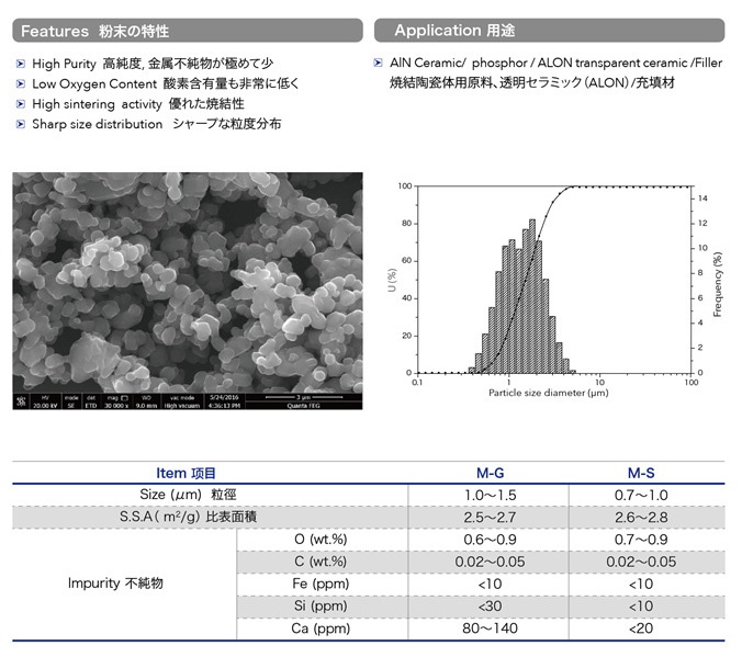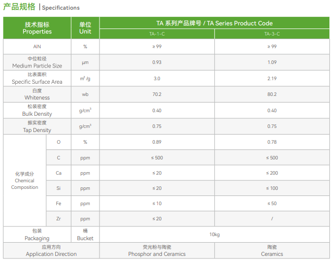 百圖高新材料股份有限公司氮化鋁TA粉參數