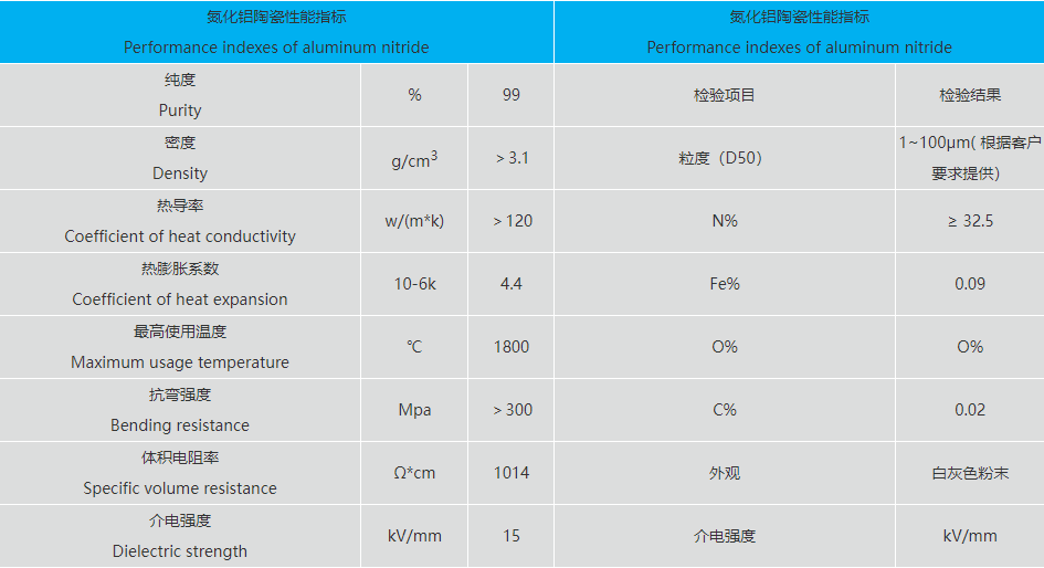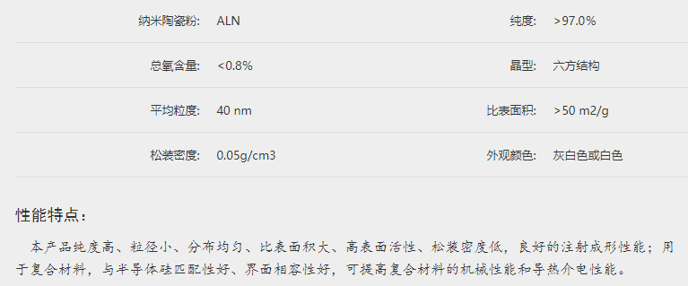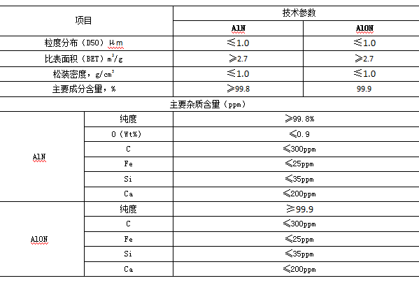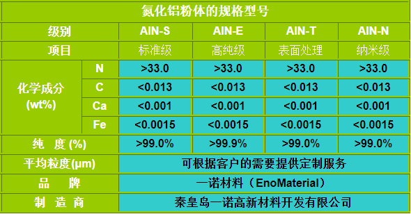秦皇島一諾高新材料開發有限公司氮化鋁粉體產品參數