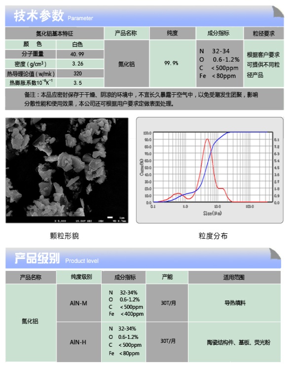 揚州中天利新材料股份有限公司氮化鋁粉體產品參數表