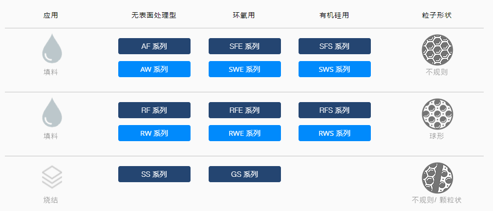 目前,竹路應用材料的氮化鋁粉末產品有不規則型、球型、燒結型三大類、十四個系列,主要應用于燒結(陶瓷基板、陶瓷零件)與填料(導熱界面材料、導熱粘合劑、導熱添加劑、導熱墊、導熱封裝膠)兩大部分。其中的SS系列是該公司純度最高等級的AlN粉末,平均粒徑為2μm,在產品組合中金屬雜質和氧/碳含量最低。