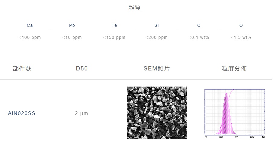 竹路應用材料股份有限公司氮化鋁粉末產品類別