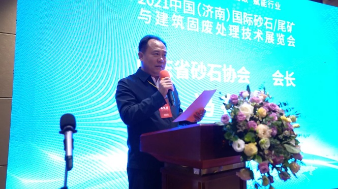 新聞發(fā)布會開始,首先由山東省砂石協(xié)會馮存?zhèn)L致辭,馮會長表示,山東省砂石協(xié)會作為2021濟(jì)南砂石展的主辦單位,將大力整合行業(yè)資源,充分發(fā)揮協(xié)會在行業(yè)內(nèi)的影響力。攜手廣大砂石會員企業(yè),共同借力2021濟(jì)南砂石展的“東風(fēng)”,掀起砂石行業(yè)綠色革命浪潮,搶占智能制造制高點,創(chuàng)新新技術(shù)新裝備,構(gòu)建綠色發(fā)展新格局,迅速完成砂石行業(yè)轉(zhuǎn)型升級。