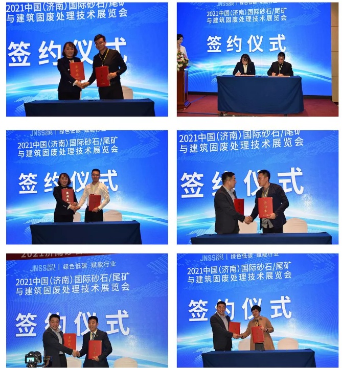 經(jīng)過詳盡的展會介紹,參會的數(shù)十位企業(yè)嘉賓對2021濟(jì)南砂石展有了進(jìn)一步了解與認(rèn)識,也對濟(jì)南砂石展的舉辦充滿了期待與信心,積極報名參加濟(jì)南砂石展并上臺簽約,組委會與山水重工、景津環(huán)保、功力集團(tuán)、鑫金山智能裝備、金寶山機械、重慶弗雷西等企業(yè)進(jìn)行簽約。本屆砂石展會重點邀約行業(yè)領(lǐng)軍企業(yè)入駐展會,匯集砂石行業(yè)最尖端力量,匯融砂石行業(yè)新技術(shù)、新裝備,聚力產(chǎn)業(yè)新格局。