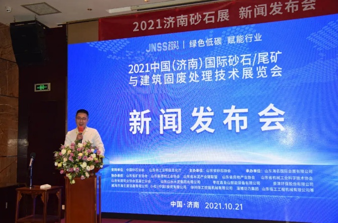 10月21日上午,2021濟(jì)南砂石展新聞發(fā)布會在濟(jì)南舜和國際酒店召開。現(xiàn)場發(fā)布:由中國砂石協(xié)會支持,山東省砂石行業(yè)協(xié)會主辦、山東海名國際會展有限公司承辦的“2021年中國(濟(jì)南)砂石/尾礦與建筑固廢處理技術(shù)展覽會”將于2021年12月10-12日,在山東國際會展中心盛大召開,將成為中國砂石行業(yè)集展覽、交流、學(xué)習(xí)、采購等多種功能于一體的全新商務(wù)平臺。