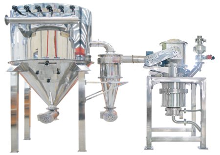 由于粉碎機內部有粒度調節機械,制品中粗粒子不斷循環粉碎,因而能獲得粒子均勻,粒徑公布范圍小的制品。