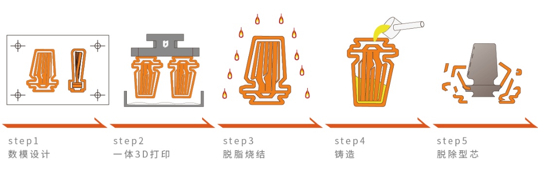 3D打印鑄造陶瓷型芯流程圖(圖片來(lái)源:十維科技)