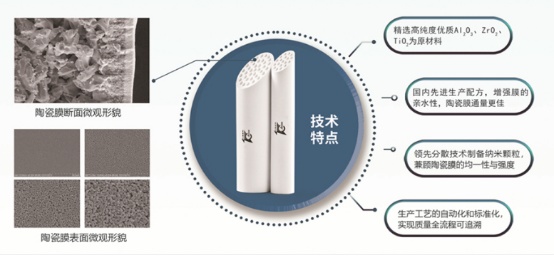 無機陶瓷膜是以氧化鋁、氧化鈦、氧化鋯等無機材料經高溫燒結而成的具有多孔結構的精密陶瓷過濾材料,包含多孔支撐層、過渡層及微孔膜層三層結構,呈非對稱分布,過濾精度涵蓋微濾、超濾、納濾。