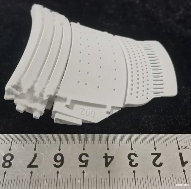 西安國宏天易智能科技有限公司采用自研固含量高達75%以上硅基陶瓷漿料作為原材料,經過3D打印成形、脫脂、浸漬、燒結等工序處理,僅需一周的時間,便生產出合格的陶瓷型芯,并已通過了初步論證實驗。