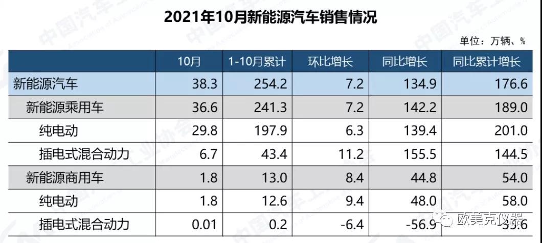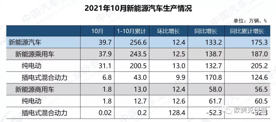 近日,中國汽車工業協會發布了2021年新能源汽車行業經濟運行指標,前十個月累計生產新能源汽車256.6萬輛,同比累計增長175.3%;累計銷售新能源汽車254.2萬輛,同比累計增長176.6% 。產、銷數量均創歷史新高,下面來看具體數據: