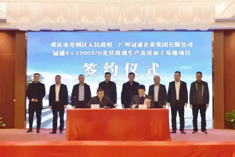 中國粉體網訊 日前,重慶市開州區人民政府與廣州冠盛企業集團有限公司舉行簽約儀式,總投資100億元的光伏玻璃生產及深加工基地項目落戶開州,由開州區委副書記、區長陳道彬和安徽冠盛藍玻實業有限公司董事長藍越代表雙方進行簽約。