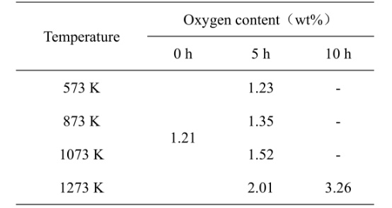 王月隆等選取初始氧含量為1.21wt%的氮化硅粉體,在流動的空氣中,573K-1273K下進行不同溫度的氧化。