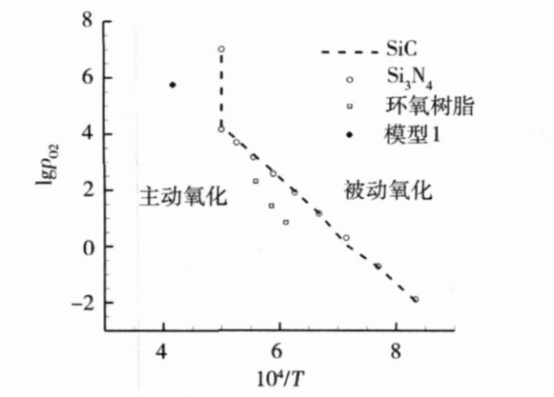 陳思員等通過試驗得到不同氧分壓下氮化硅的轉捩溫度曲線,該曲線將氧化區域劃分為被動氧化區域和主動氧化區域。