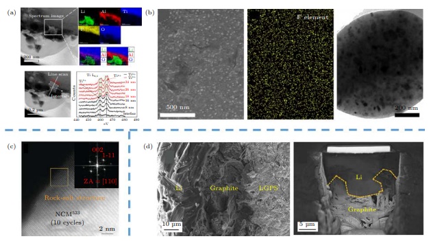 圖1 物理接觸界面的結(jié)構(gòu)和物質(zhì)輸運(yùn)(a)LCO正極在全固態(tài)電池中結(jié)構(gòu)演化;(b)LNMO正極材料在全固態(tài)電池中的結(jié)構(gòu)演化;(c)LCO/LLZO固-固接觸界面結(jié)構(gòu)和物質(zhì)交換的調(diào)控;(d)NCM811/LGPS固-固接觸界面在工作中的結(jié)構(gòu)演化和物質(zhì)交換(來源:拱越等.全固態(tài)電池中界面的結(jié)構(gòu)演化和物質(zhì)輸運(yùn))