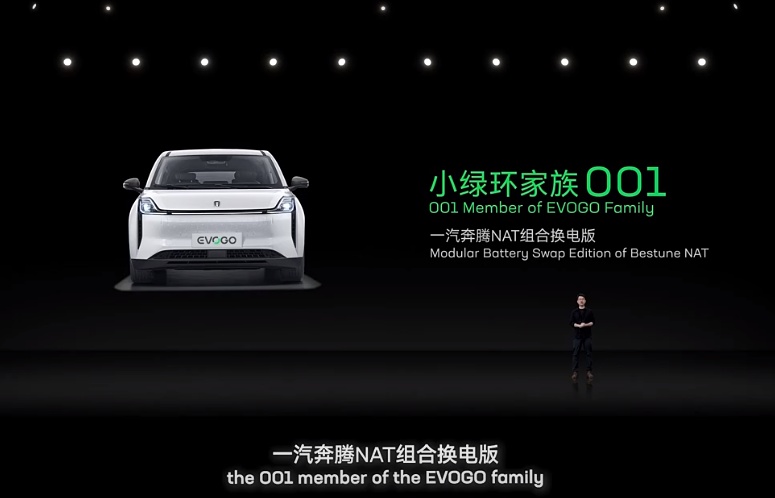 除此之外,基于創新的組合換電整體解決方案,時代電服打造了EVOGO的全新服務品牌,并賦予其一電多車、按需租電、可充可換三大特點。本次發布會上,時代電服揭曉了EVOGO“小綠環家族”的001號成員——一汽奔騰NAT組合換電版。時代電服總經理陳偉峰表示,將在10個城市首批啟動EVOGO換電服務,并發布更多品牌的換電車型。