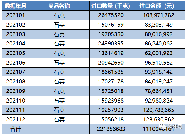 我國石英砂仍然處于供不應求局面,進口量額持續增加