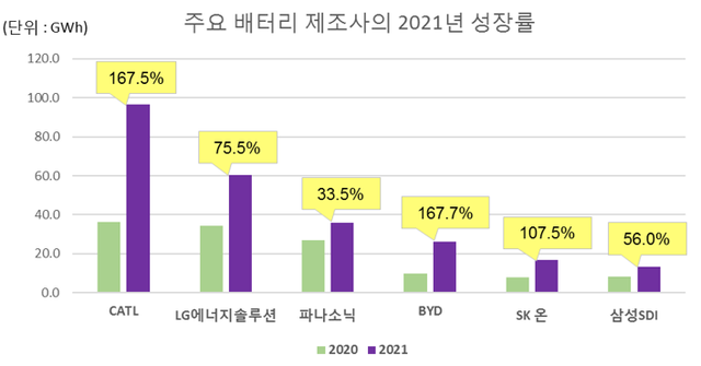 寧德時代最大的競爭對手LG新能源在這份榜單中排名第二。這家韓國公司去年在汽車上裝載了60.2 GWh的動力電池,市場份額為20.3%。主要客戶為特斯拉、大眾汽車和現代汽車等公司。