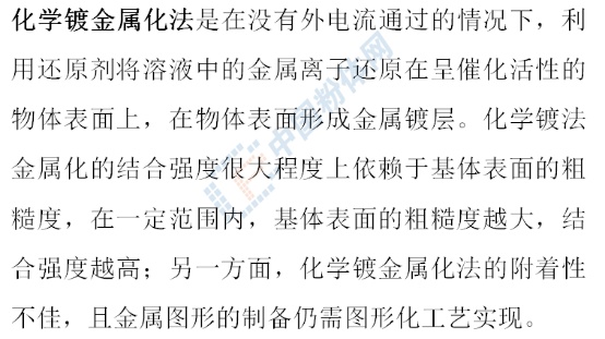 薄膜金屬化法采用濺射鍍膜等真空鍍膜法使膜材料和基板結合在一起,由于是氣相沉積,原則上任何金屬都可以成膜,任何基板都可以金屬化,而且沉積的金屬層均勻,結合強度高。但薄膜金屬化需要后續圖形化工藝實現金屬引線的圖形制備,成本較高。