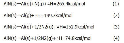 使用激光實現氮化鋁金屬化的機理是利用激光產生的高溫使氮化鋁熱分解。氮化鋁受熱可分解為金屬鋁和氮氣。但溫度不同,分解產生的鋁和氮氣處于不同的形態。熱分解過程可用如下化學方程式描述: