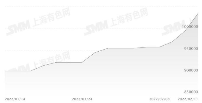 2月11日,SMM鐠釹氧化物現(xiàn)貨均價報1035000元/噸,近一個月漲幅高達(dá)14.68%;SMM鐠釹金屬現(xiàn)貨報價1270000元/噸,近一個月漲幅高達(dá)14.93%。