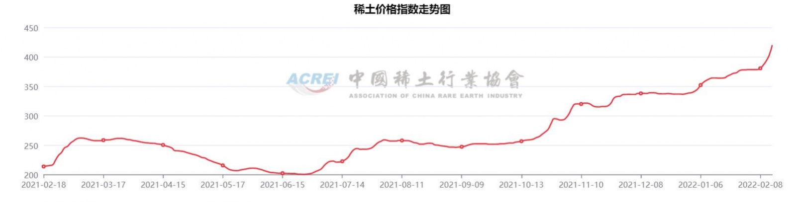 中國粉體網訊 據中國稀土行業協會,02月14日稀土價格指數為420.6,較上周五漲17.1點,續創歷史新高。