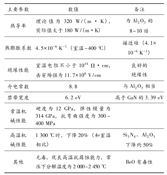 另一方面,AlN作為第三代半導(dǎo)體材料的典型代表,其晶體具有禁帶寬度大、電子漂移速度高、介電常數(shù)小等特點,適合制備高頻大功率、耐高溫、抗輻射的半導(dǎo)體微電子器件、深紫外LED光電器件及外延生產(chǎn)Ⅲ族半導(dǎo)體氮化物層結(jié)構(gòu)的襯底。