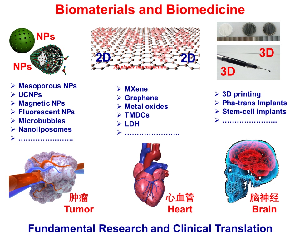 圍繞重大疾病的診療需要(腫瘤診療、分子影像等),聚焦無機納米生物醫用材料,開展相關材料的設計合成、生物安全性、生物學效應、藥物輸運、分子影像和影像診斷/治療一體化等研究,并針對臨床應用的需求,推動其醫學轉化應用。探索基于無機納米生物材料的重大疾病新型治療方法。