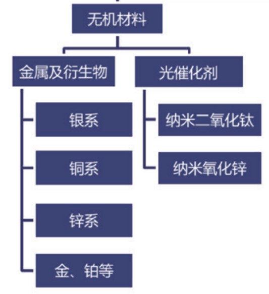 依據化學物質內部成分的不同,可以將抗菌材料分為天然、無機和有機抗菌材料。其中,無機抗菌材料又可以分為3類:一是帶有抗菌功能的金屬離子與無機載體合成的無機抗菌材料;二是在有光源條件下可以產生抗菌物質的金屬氧化物;三是金屬有機骨架化合物(MOFs)抗菌材料。本文以無機抗菌材料中的前兩類為例,闡述抗菌材料與載體材料的研究及應用情況。