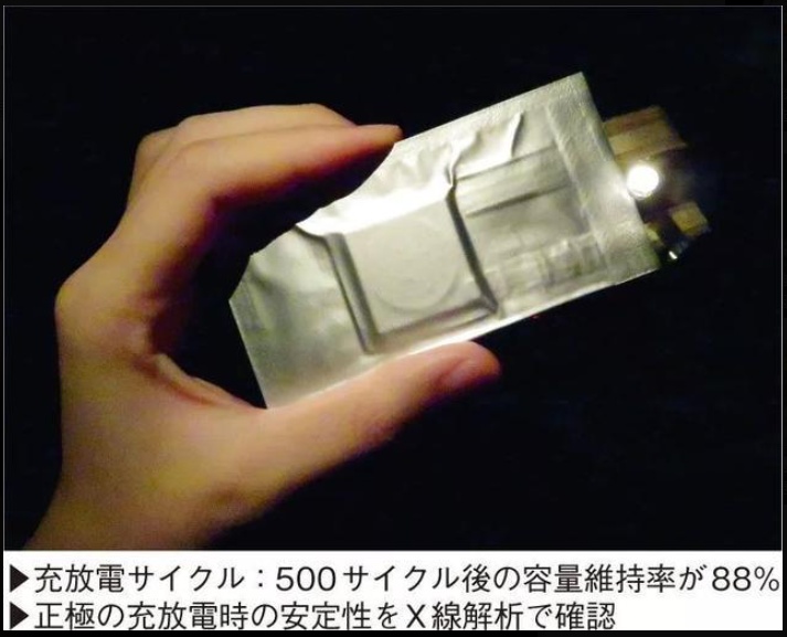 2018年,日本電氣硝子聯合產業技術綜合研究所、長岡技術科技大學等共同開發鈉離子二次電池。從硬幣型的電池發展成手掌大小的層壓電池。循環壽命500次,容量保持率為88%,達到消費產品級的使用水平,日本電氣硝子表示:“2025年大規模生產電動汽車使用的電池計劃進展順利。”