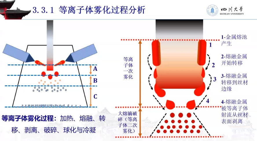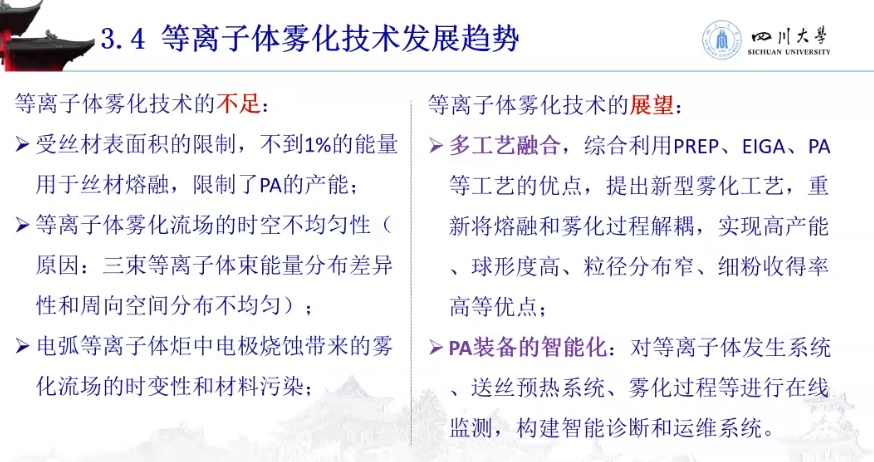 最后,關(guān)于等離子體霧化技術(shù)的發(fā)展歷史、制造裝備、制造機理及發(fā)展趨勢,余德平教授做了詳細地分析,并對高能等離子體束的3D打印技術(shù)進行總結(jié)展望。