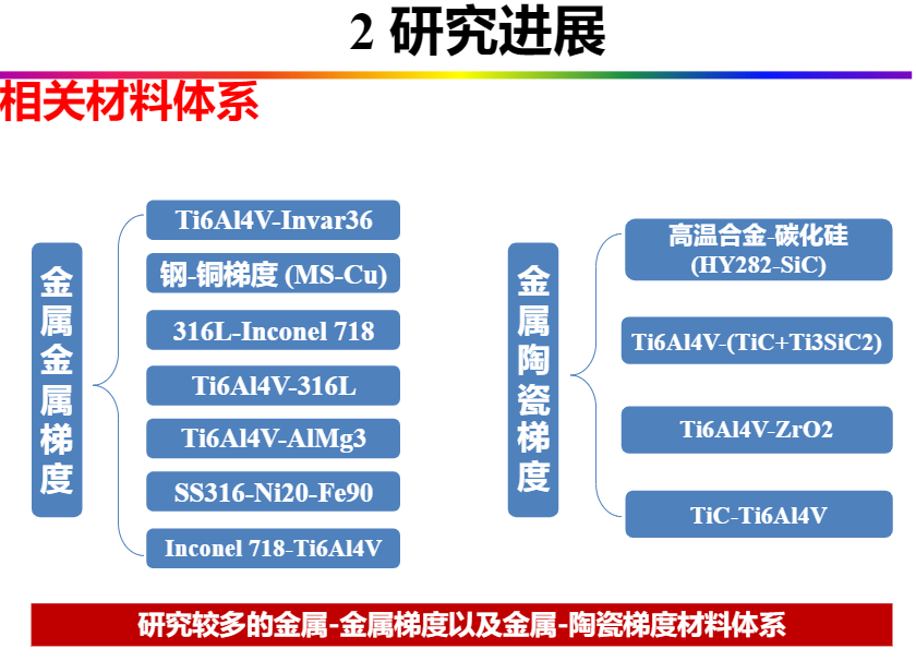 接下來,馬老師詳細講述了功能梯度材料(主要是金屬-金屬梯度材料、金屬-陶瓷梯度材料)的研究進展。