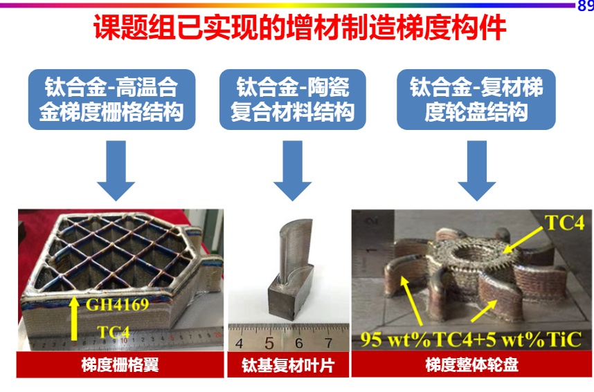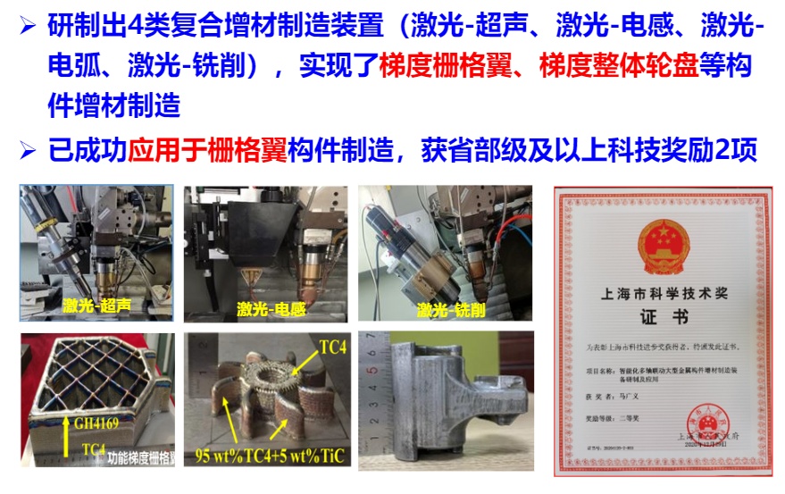 最后,馬老師分析了功能梯度材料在航空航天領(lǐng)域、醫(yī)療領(lǐng)域、汽車制造領(lǐng)域、機械制造領(lǐng)域的應(yīng)用。并總結(jié)了其課題組已經(jīng)實現(xiàn)的增材制造梯度構(gòu)件。