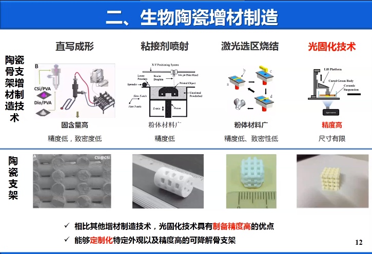 最后,吳老師從技術(shù)、原理、分類等多方面詳細介紹了生物陶瓷增材制造、陶瓷型芯用硅基陶瓷增材制造、氮化硅陶瓷增材制造、微波陶瓷增材制造。
