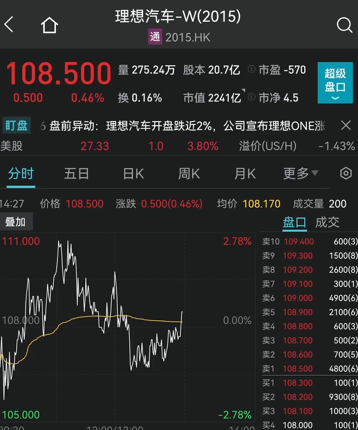 而今天早盤,漲價消息出來之后,理想汽車一度沖高近3%,隨后回落,截止發稿,微漲0.46%。