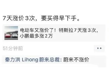 此前,蔚來汽車聯合創始人、總裁秦力洪:蔚來不漲價,至少目前還沒這個打算。