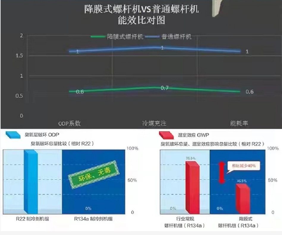 我們為了降低用戶使用成本,大家都知道,使用工業設備,電費是一項非常大的支出,丹耐斯目前推出全新的降膜式變頻冷凍機組,幫助客戶在每年能節省十多萬的電費成本!