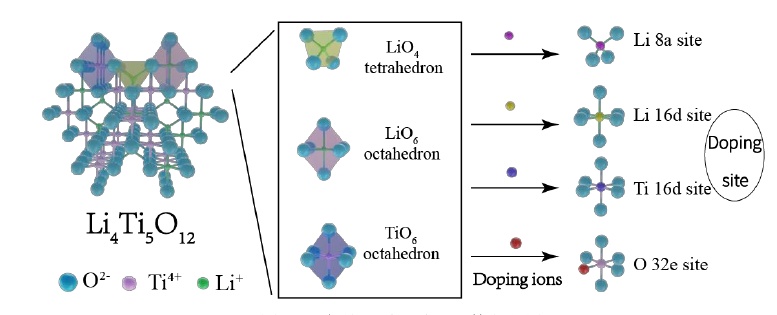 尖晶石型鈦酸鋰晶格中有4種位置可以被摻雜。