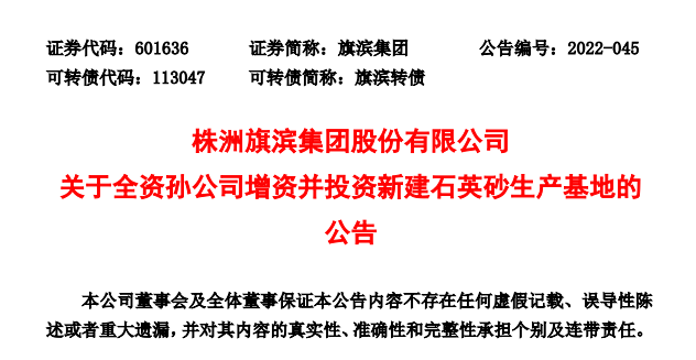 參考來源:《旗濱集團關于全資孫公司增資并投資新建石英砂生產基地的的公告》