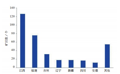 據(jù)統(tǒng)計,全國共有 23 個省 ( 區(qū)、市 ) 有脈石英礦產(chǎn)地,分布廣泛。其中,江西礦產(chǎn)地最多,達(dá) 126處,占比 36%;次為福建,共 76 處,占比 22%;吉林 32 處,占比 9%;新疆、四川和遼寧各占比約 5%;其他省份均幾處。