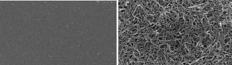 相對于其他制備方法,砂磨工藝效率更高、能耗更低,由此制得的碳納米管導電漿料具有高離散性、高穩定性、低雜質含量、低粘度等優良特征,漿料中無明顯的團聚顆粒存在,碳納米管纏結程度低,離散態單根碳納米管清晰可見。
