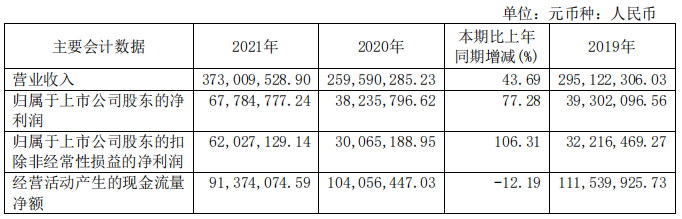 中國粉體網(wǎng)訊 日前,四川金頂披露2021年年報,公司實現(xiàn)營業(yè)收入37300.95萬元,比上年增加11341.92萬元,同比增長43.69%;歸屬于上市公司股東的凈利潤6778.48萬元,比上年增加2954.90萬元,同比增幅77.28%;歸屬于上市公司股東的扣除非經(jīng)常性損益的凈利潤6202.71萬元,比上年增長106.31%;加權(quán)平均凈資產(chǎn)收益率34.62%,比上年提升7.41個百分點。