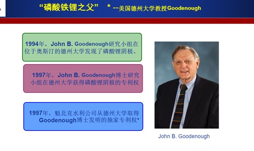 作為鋰離子電池正極材料,磷酸鐵鋰優點和缺點都很突出,從材料誕生之日起,其制備和后處理技術乃至發明人都引起了世界各國的知識產權糾紛。磷酸鐵鋰材料專利自產生到現在,數年來的發展歷程,華南師范大學的舒東教授像講故事一樣娓娓道來。在他的講述下,我們看到磷酸鐵鋰材料的發展,經歷了初期的“冷板凳”、中期的多元化、后期的規范化等一系列過程。而磷酸鐵鋰材料的發明人Good enough,也像磷酸鐵鋰材料一樣閃耀,成為我們學習的榜樣,生命不息,奮斗不止。以下是部分精彩內容。