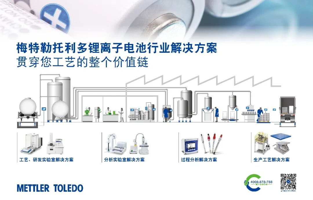 除上述環(huán)節(jié),鋰電池的生產(chǎn)過程還有很多測量參數(shù)值得關(guān)注,比如正極材料中的金屬離子,堿含量,電解液中的HF,前驅(qū)體合成過程在氧含量以及正負極材料的熱安全性,熱穩(wěn)定性等。梅特勒托利多擁有非常成熟的解決方案,覆蓋研發(fā),生產(chǎn),質(zhì)檢各個環(huán)節(jié),并在鋰電龍頭企業(yè)都有成功案例。