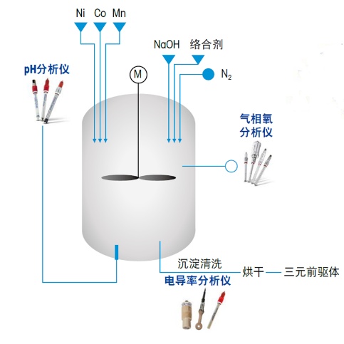 但前驅(qū)體絡(luò)合過程中,物料漿液易粘附在pH傳感器玻璃敏感膜表面,甚至形成顆粒堵塞隔膜孔,嚴重影響測量的準確性,并造成pH傳感器在該過程的維護復雜,影響生產(chǎn)進度。