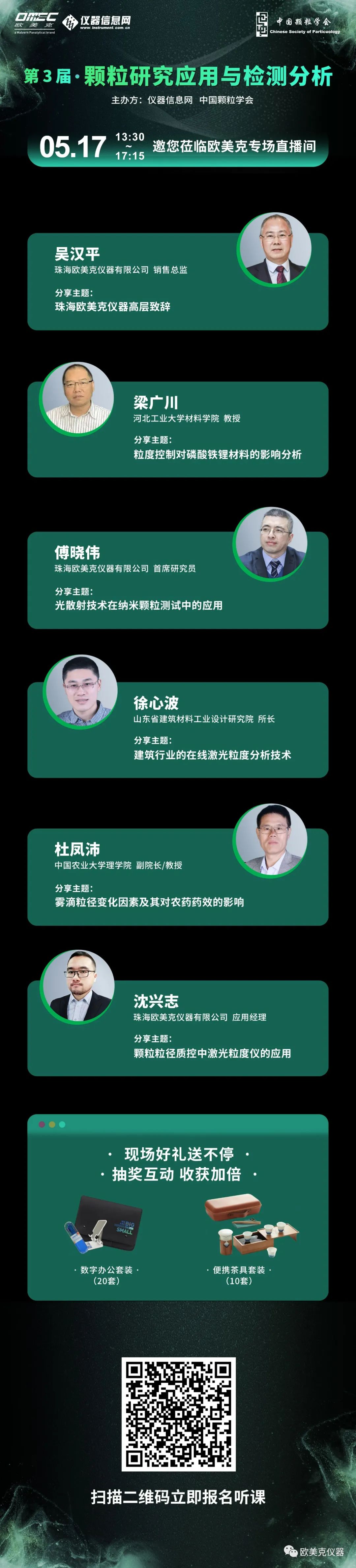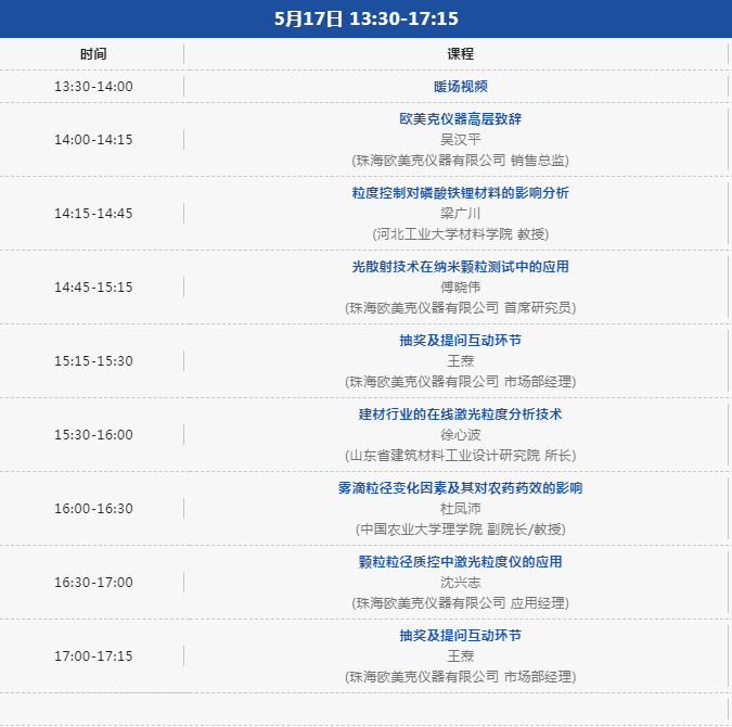 作為中國顆粒學會及儀器信息網的長期合作伙伴單位,珠海歐美克儀器有限公司旨在保持粒度表征研究應用及檢測分析的前沿熱點和技術難點的探討,同時促進業內同仁的相互交流和粒度表征領域的良性發展。現定于5月17日13:30至17:15分舉辦學術報告專場直播。