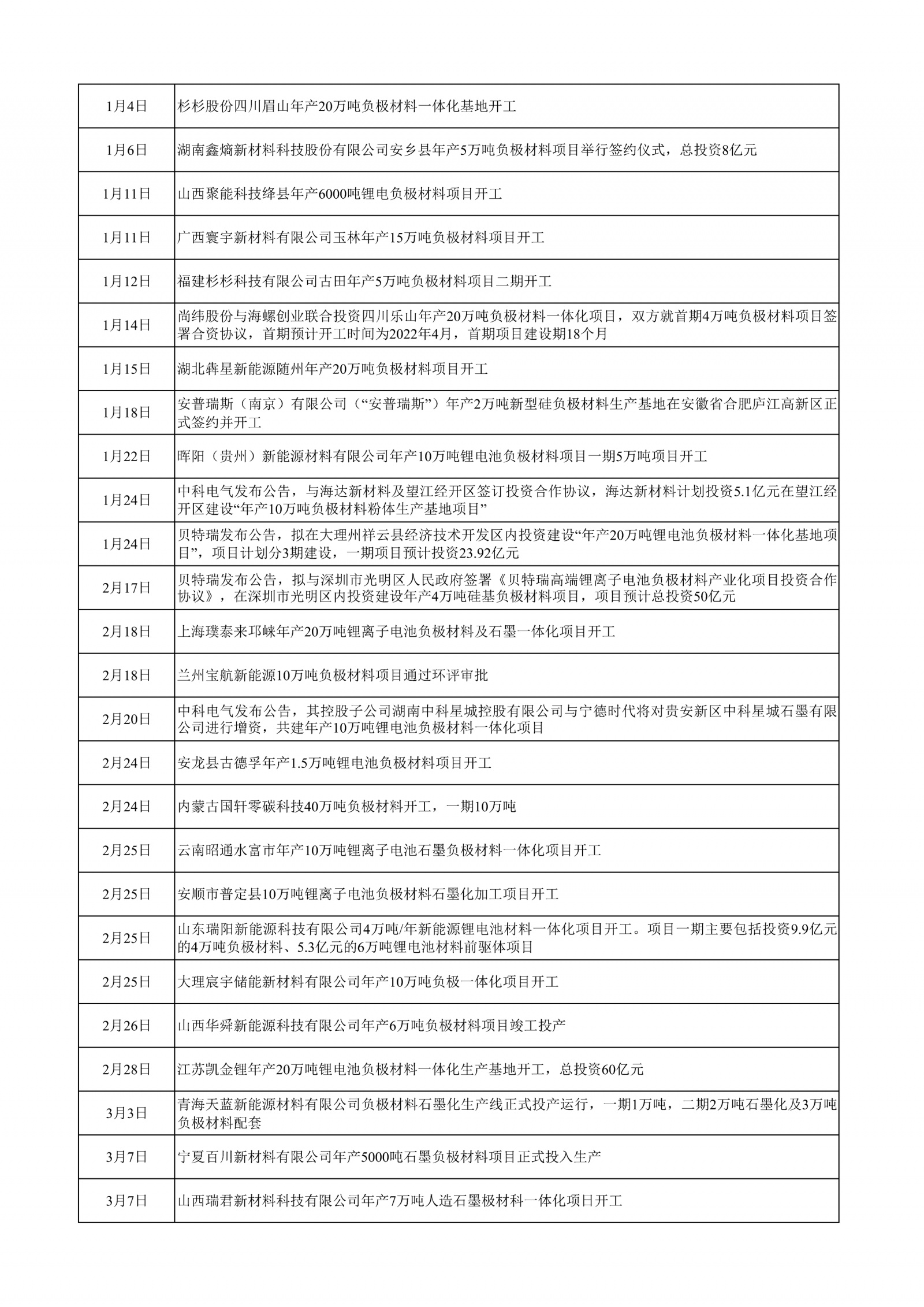 2022年開年以來,多個負極材料項目開工。小編對開年以來負極材料行業項目動態進行匯總,以便讀者參考。據不完全統計,截止5月初,負極材料規劃或動工項目約52個,產能10萬噸以上項目29個。