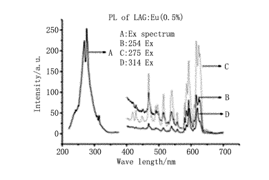 另外,據相關人員研究發現,采用固相法制備了Eu3+摻雜LAG(La2O3,Al2O3,Gd2O3)熒光體,獲得的熒光體的晶體尺寸62.95nm,同時分別考察了激發波長為254nm、275nm和314nm時獲得的發射光譜,發射中心位于450nm~620nm波長附近,可以得出結論,該材料作為發光材料是很有前途的。