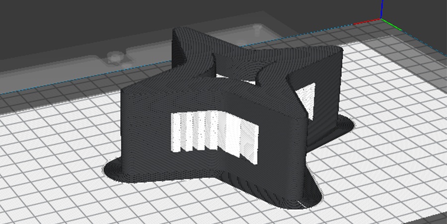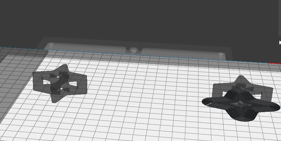 打印模型情況:一個產品模型,在切片軟件上開啟鏡像打印模式,模型自動并排放置和打印。
