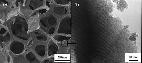 典型的介孔生物活性玻璃支架具有大孔(a)和有序介孔(b)結構