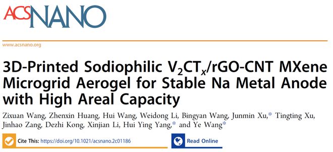 1.作者通過3D打印技術成功制備了一種V2CTx/rGO-CNT微網格氣凝膠,并進一步將其用作鈉金屬負極的基質。